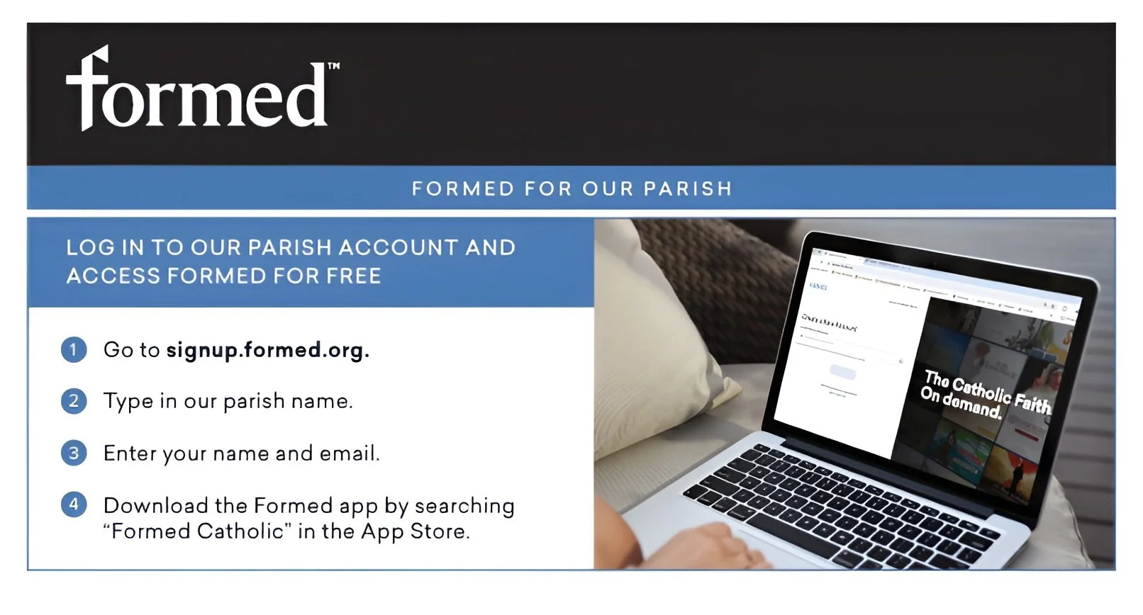 We are excited to share that our parish now has a subscription to Formed.org, a fantastic online platform filled with inspiring Catholic content for everyone—adults, children, families, and individuals.