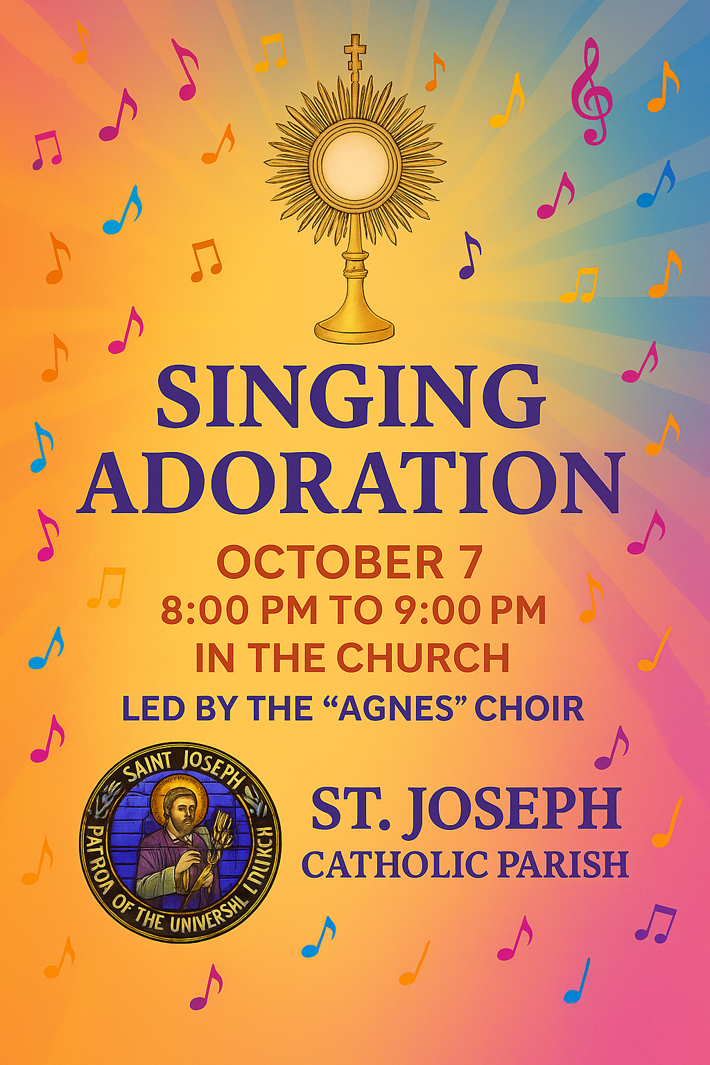 We warmly invite you to spend a beautiful hour before the Lord in the Blessed Sacrament, lifted up in song and prayer. The evening will be led by the choir Agnes, whose music will help us enter more deeply into worship.